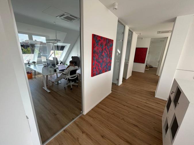 Das Gebäude erstreckt sich über fünf Etagen und verfügt über einen Aufzug, der einen bequemen Zugang zu allen Ebenen ermöglicht. Das Büro ist mit einer Klimaanlage ausgestattet, um ein angenehmes Arbeitsklima zu gewährleisten, unabhängig von den Wetterbedingungen. Der Zugang zum Büro wird über einen Türöffner per App geregelt, was eine bequeme und sichere Möglichkeit bietet, das Büro zu betreten. Das Büro verfügt über eine gut ausgestattete Kaffeeküche, wo Mitarbeiter Getränke zubereiten und sich zwanglos austauschen können.